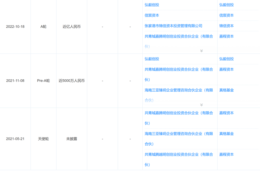 天眼查信息显示,在本轮融资之前,信宸资本、弘毅创投、真格基金等知名投资机构均已入局投资,嘉程资本更是一路跟随,从天使轮一直投到A轮。